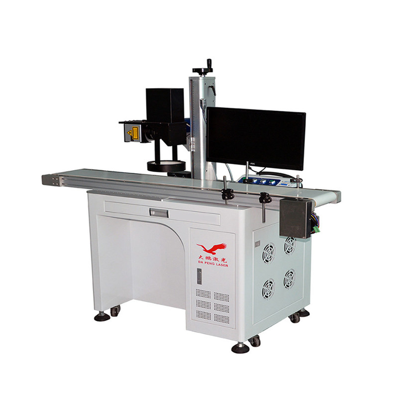 Dapeng Laser High Speed UV Laser Marking Machine with CCD Visual Positional System สําหรับการตราเครื่องชาร์จโทรศัพท์พลาสติกสีขาว